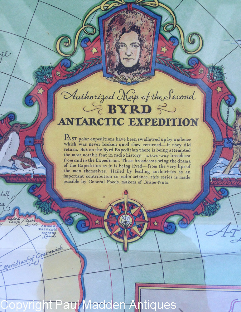 Vintage Map of Admiral Byrd’s 2nd Antarctic Exploration โ Paul