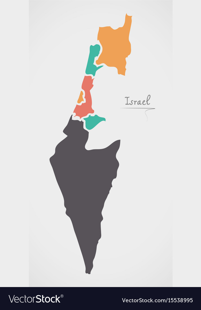 Israel map with states and modern round shapes Vector Image