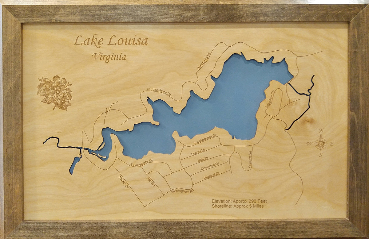 Lake Louisa, Virginia Laser Cut Wood Map| Personal Handcrafted